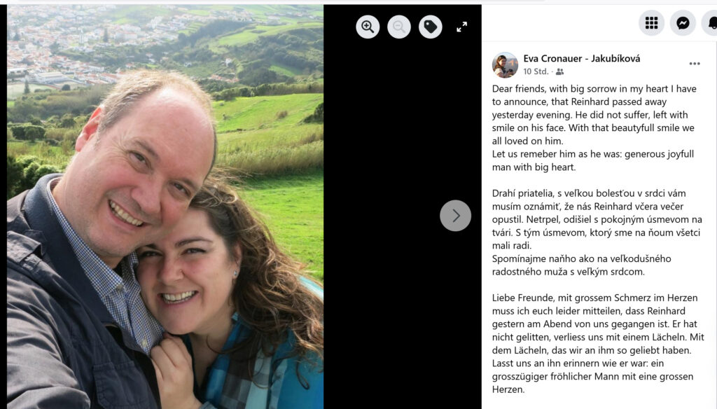 Seit einigen Jahren haben Reinhard und Eva ein schönes Haus ganz in unserer Nähe, quasi in Rufweite. Ihr Plan war, wie in Gesprächen anklang, ihre Firma zu verkaufen und dann ihren Lebensmittelpunkt mehr und mehr nach Faial zu verlagern. Es ist noch gar nicht so lange her, da haben wir drüben Reinhards 60sten gefeiert. Zusammen mit einigen seiner alten Freunde, die alle im gleichen Jahr 60 wurden, und einigen neuen Freunden hier, es war eine schöne und ausgelassene Feier. Jetzt ist er tot. Wir werden uns genau so an ihn erinnern, wie Eva oben geschrieben hat!
