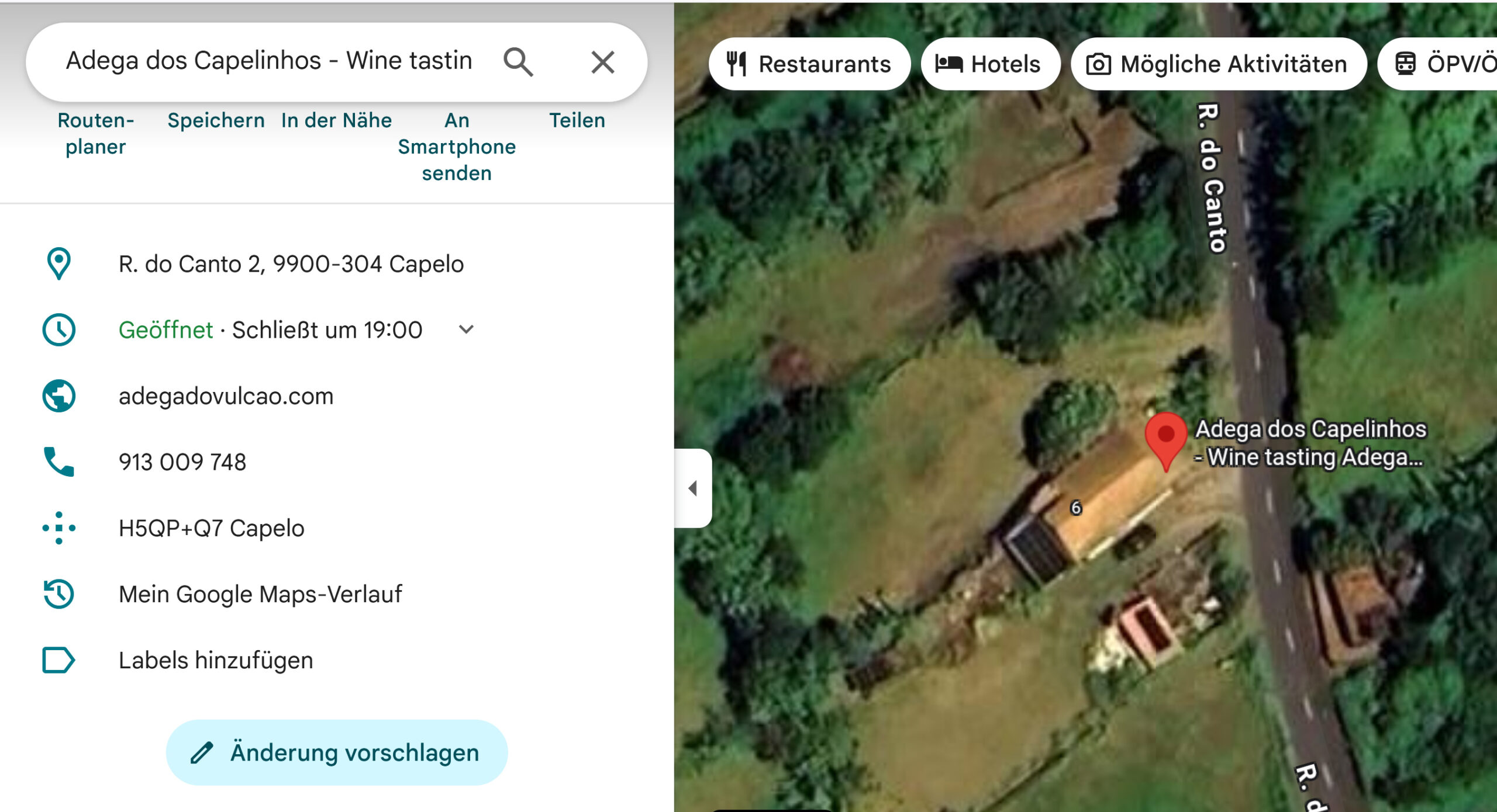 Ihr erkennt ja vielleicht unser Haus und die Honeymoon-Suite auf dem Bild, und laut Google sind wir die Adega dos Capelinhos. Und somit haben in den letzten Tagen einige Touristen hier gehalten und wollten Wein probieren. Naja, warum nicht, wir haben ja immer Wein im Haus. Heute kamen aber Touris, die auch essen wollten. Da stoßen wir dann doch an unsere Grenzen. Also habe ich eben mal unseren Nachbarn Gianni angerufen, der tatsächlich die Adega dos Capelinhos betreibt, und ihm gesagt, dass er womöglich den Pin auf Google Earth falsch gesetzt hat. Es war ihm sehr peinlich, also müssen wir in Zukunft vermutlich keine Menschen mehr mit food und drinks versorgen. Aber lustig war es schon!