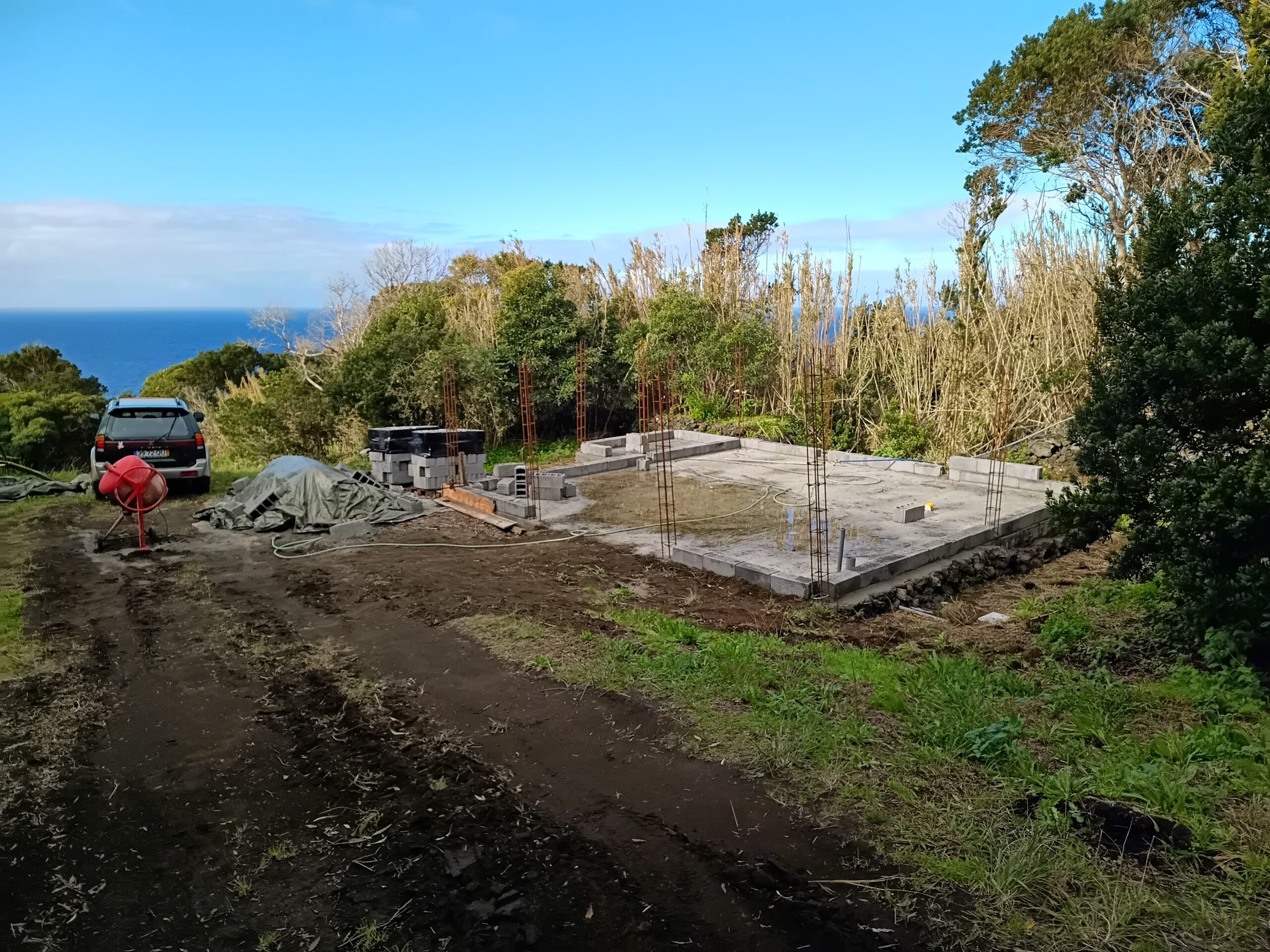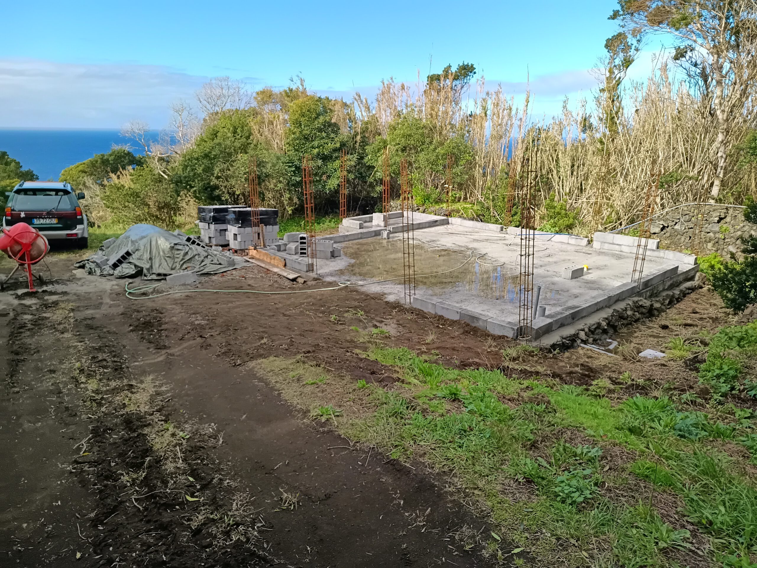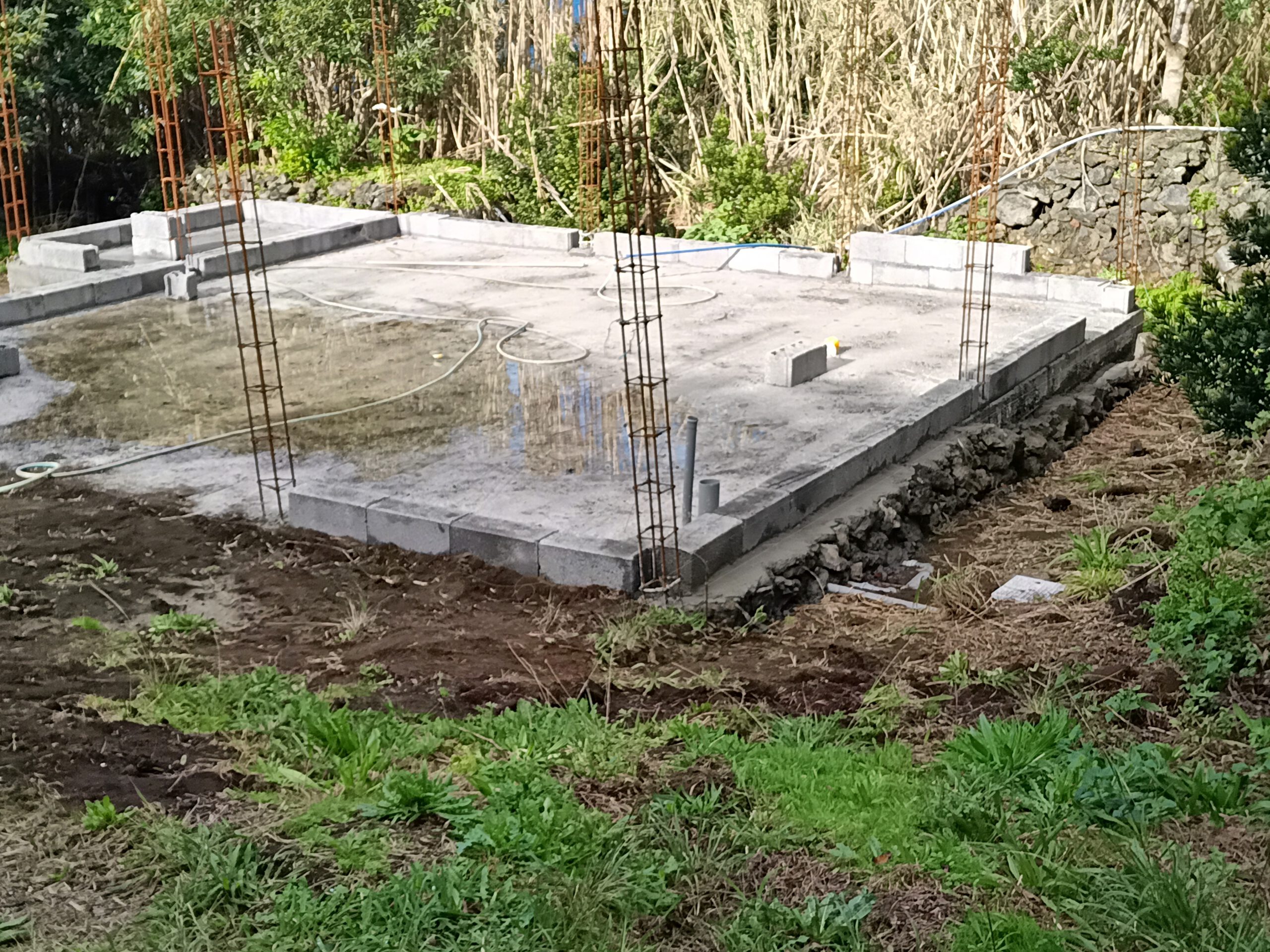 Leider sind wir ziemlich langsam, ich baue das Haus selbst mit Hilfe meines Freundes Jose, so dass es wohl noch ein paar Wochen dauern wird, bis die Decke gegossen werden kann. Aber alles, was ich selbst mache, brauche ich nicht zu bezahlen, und so oder so macht es Spass, etwas durch eigene Hand entstehen zu sehen. Also muss der Rücken noch ein wenig leiden…